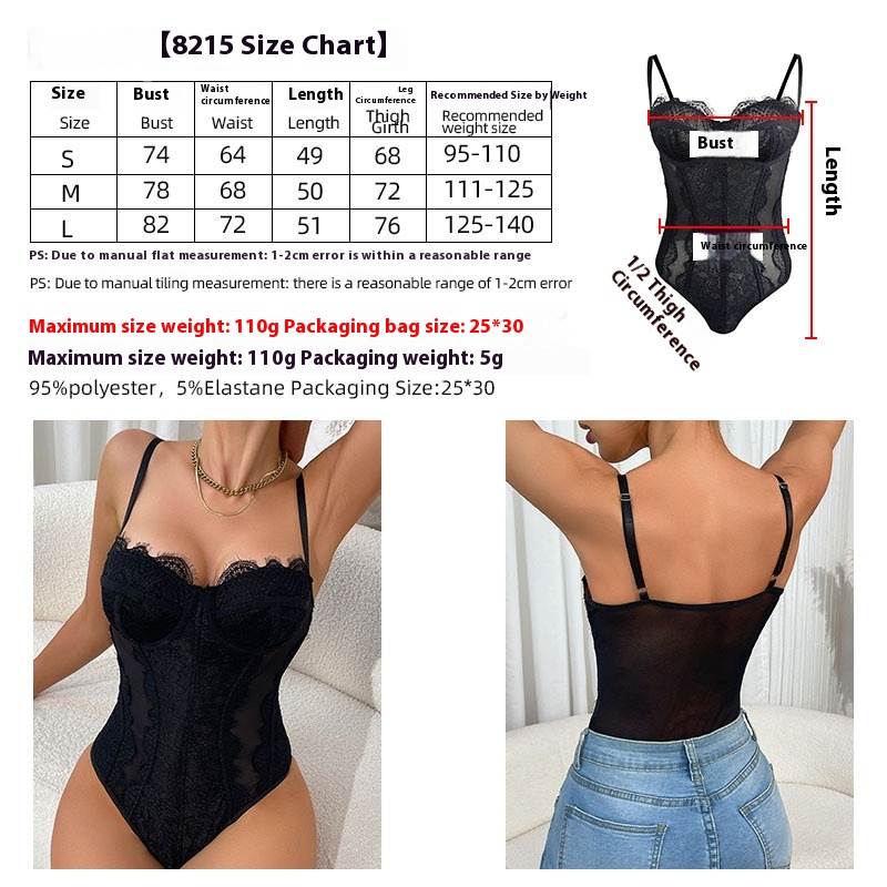 Sexy Lace Stitching Inner Suspender Hollow-out Jumpsuit